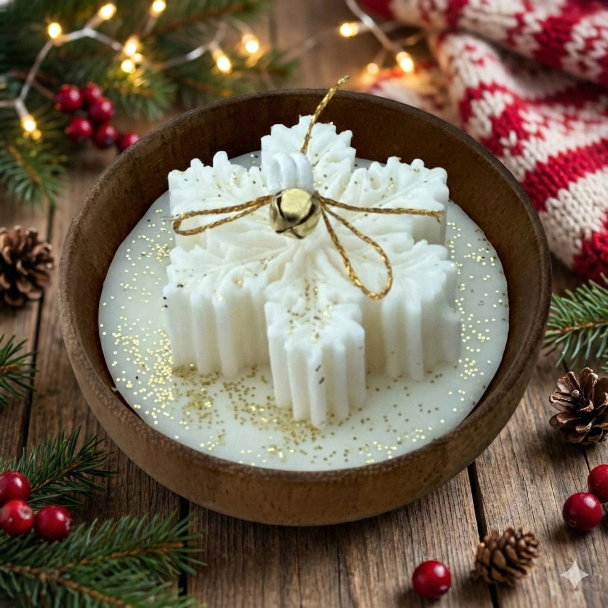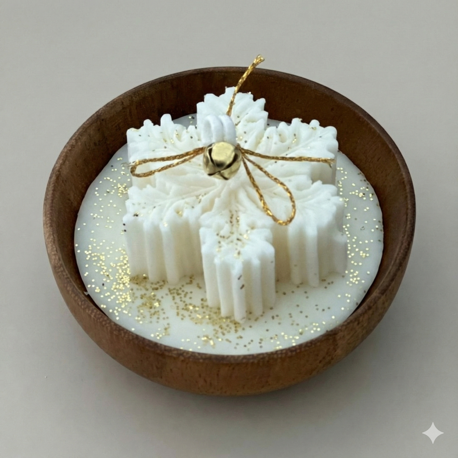 Embrace the serene beauty of winter with our exquisite Christmas Snowflake Candle, lovingly nestled in a rustic acacia wood bowl. This unique piece combines natural elegance with festive cheer, making it a perfect addition to your holiday decor or a thoughtful gift.
